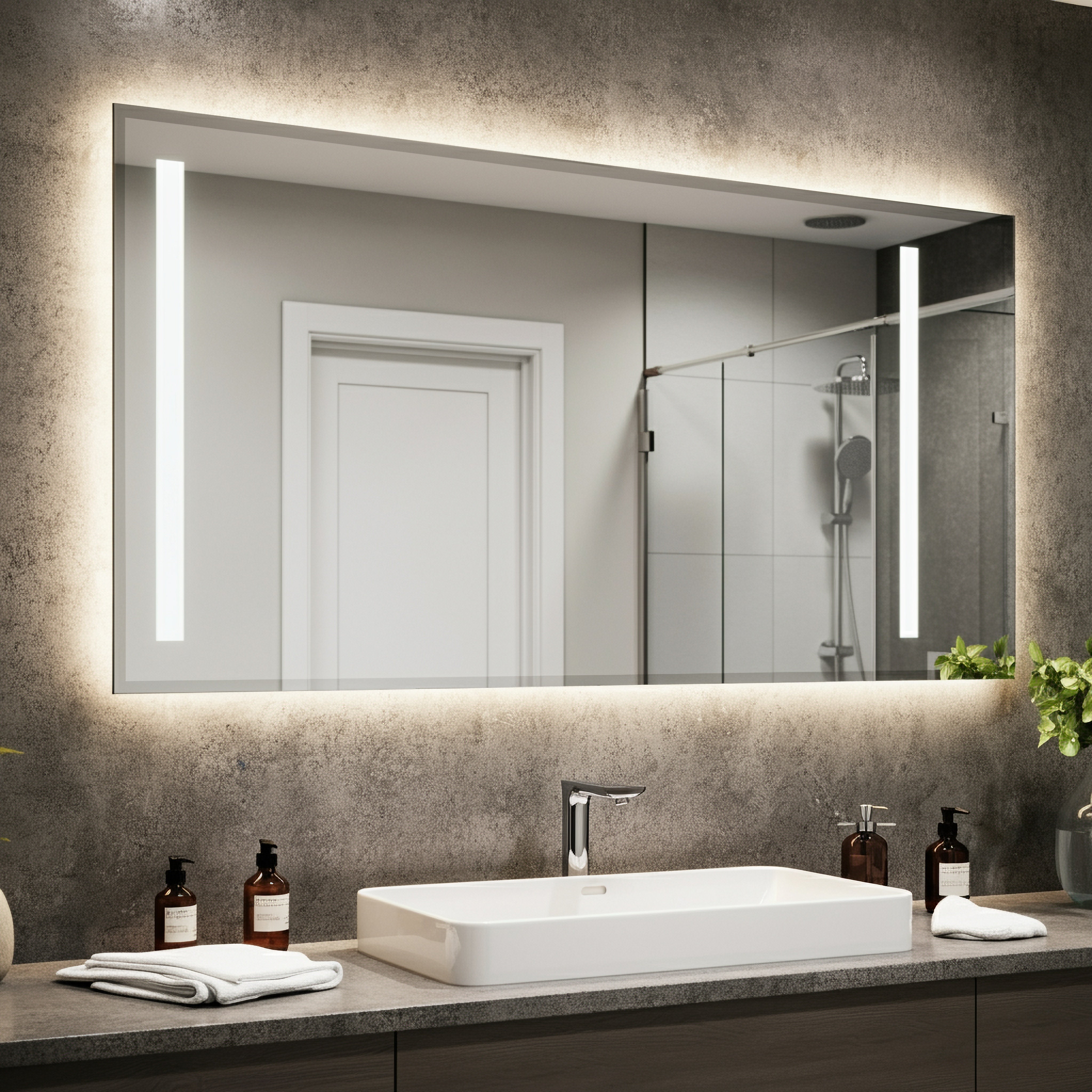 Large Bluetooth LED Bathroom Mirror with Lights+RGB Backlit Anti Fog Vanity Mirror